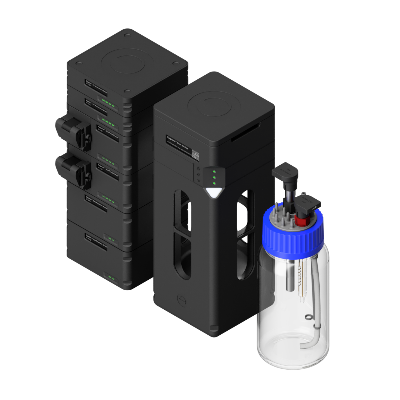 An array of Eggsbees is an affordable option for fermentation R&D budgets. Run 4, 6, or 10+ bioreactors at a time, 24/7.
